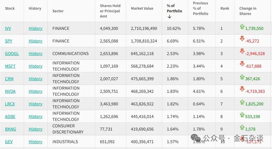 11月15日,各大传统机构近期表态相继曝光。首先,桥水积极出售英伟达和七姐妹。其次,巴菲特很少加入谷歌。第三,晶林收购了Nvidia。第四,景霖资本和高瓴资本都在中国拼命收购资产。 1) 布里奇沃特热衷于减持英伟达的股份,不仅是英伟达,还有七姐妹公司的许多公司。其中,英伟达减持472万股,只剩下251万股,撤资约9亿美元,减仓65%。此外,桥水还减持了标普500 ETF,其中谷歌减持超过50%,微软减持三分之一。 2)“股神”巴菲特先生领衔的伯克希尔哈撒韦公司公布了第三季度13F报告。巴菲特凭借巨额财富,大量购买了谷歌母公司Alphabet的股份。谷歌的市值是3.3万亿美元,显然是历史新高。巴菲特是否也改变了投资逻辑,开始采用人工智能?根据13F文件显示,巴菲特在谷歌母公司Alphabet中增持了1784万股股票,使该公司成为第十大控股公司,价值约49.3亿美元。不过,也有人猜测,Alphabet 的收购很可能由伯克希尔哈撒韦投资经理托德·库姆斯 (Todd Combs) 或泰德·韦施勒 (Ted Weschler) 进行。此外,巴菲特或他的继任者对苹果的态度始终如一:卖,卖,卖。连续两个季度减持,2024年连续三个季度减持,从同年的9亿股大幅减少至2.38亿股,三季度减持4179万股。但目前,苹果仍然是伯克希尔最大的持股公司。 3)高瓴资本对拼多多、阿里巴巴和百度进行了大量投资。拼多多uo第三季度增长26%。它已发展成为最大的控股公司,市值达11.36亿美元。其第二大控股公司是阿里巴巴,该公司已被收购近两次。按目前价格计算,收购价值为3.2亿美元。最新持仓量为5.88亿美元,第三季度增长58%。尽管富途大幅减持107万股,但富途第三季度股价飙升41%。百度首次破解前10名股票。此外,还拥有百济神州、网易等。(下图来自上海证券报) 4)晶林资产三季度大量收购谷歌,还收购了Nvidia和Synopsys。谷歌和英伟达的排名增幅分别为 852% 和 277%。这与软银和桥水相反。不过,谷歌持仓的增加与巴菲特、高邑资产的增加是一样的。与此同时,景林也增加了增持了阿里巴巴和拼多多的股份。三季度末,景林资产持有阿里巴巴股票84.34万股,较二季度末增长81%。公司持有拼多多股份335.7万股,上涨逾4%。景林抛售了多家主要股票,包括大全新能源、携程、百济神州和禾赛科技。